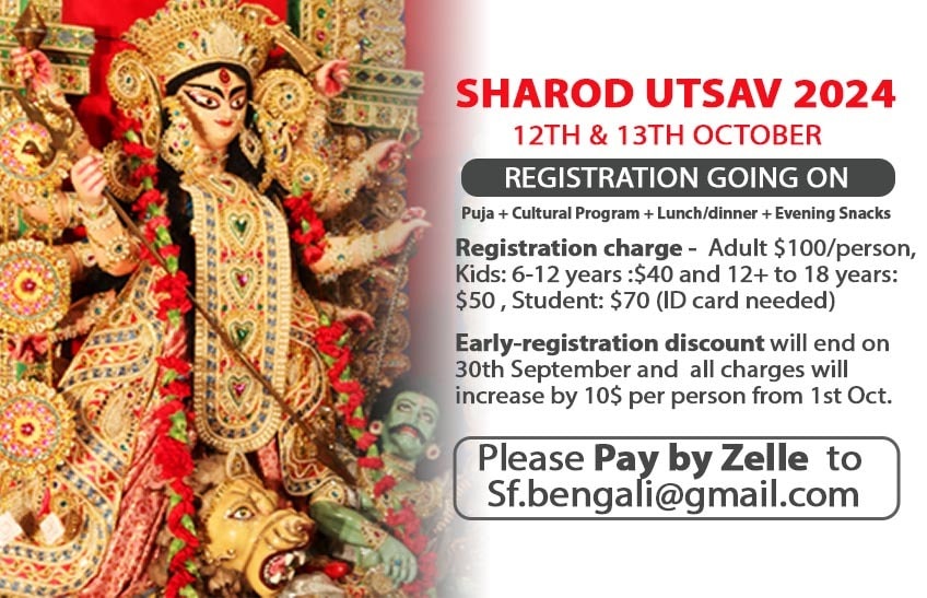 Please Pay via Zelle to Sf.bengali@gmail.com